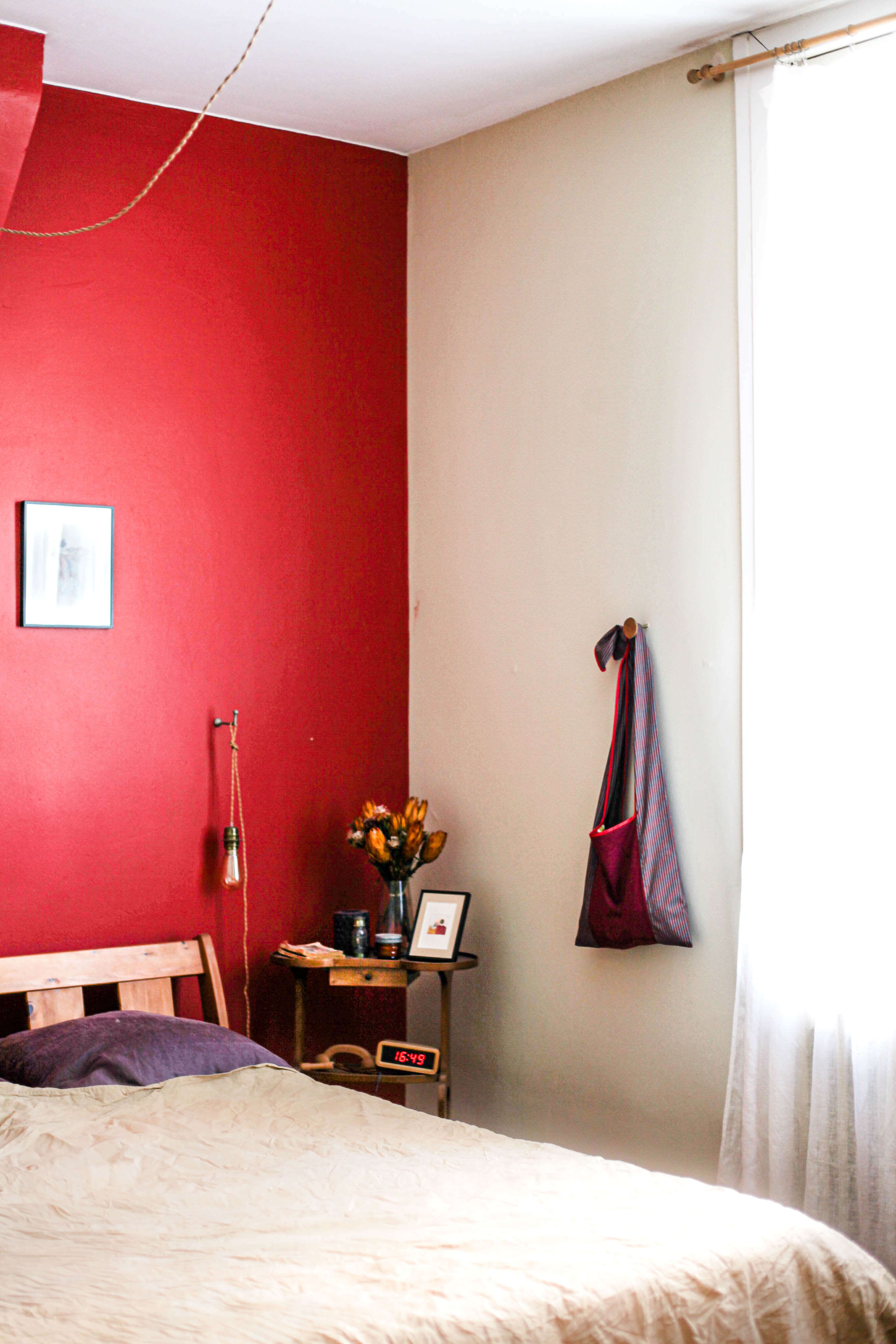 La première chambre, la plus grande, ainsi que la salle de bain sont aménagées et décorées de façon a toujours respecter le cachet de cette maison ancienne. On installe par exemple un papier peint ancien dans la cagibi.